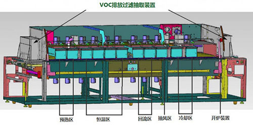 中型回流焊(回流炉)的温度曲线可以分为4段:升温区、恒温区、回焊区、冷却区。