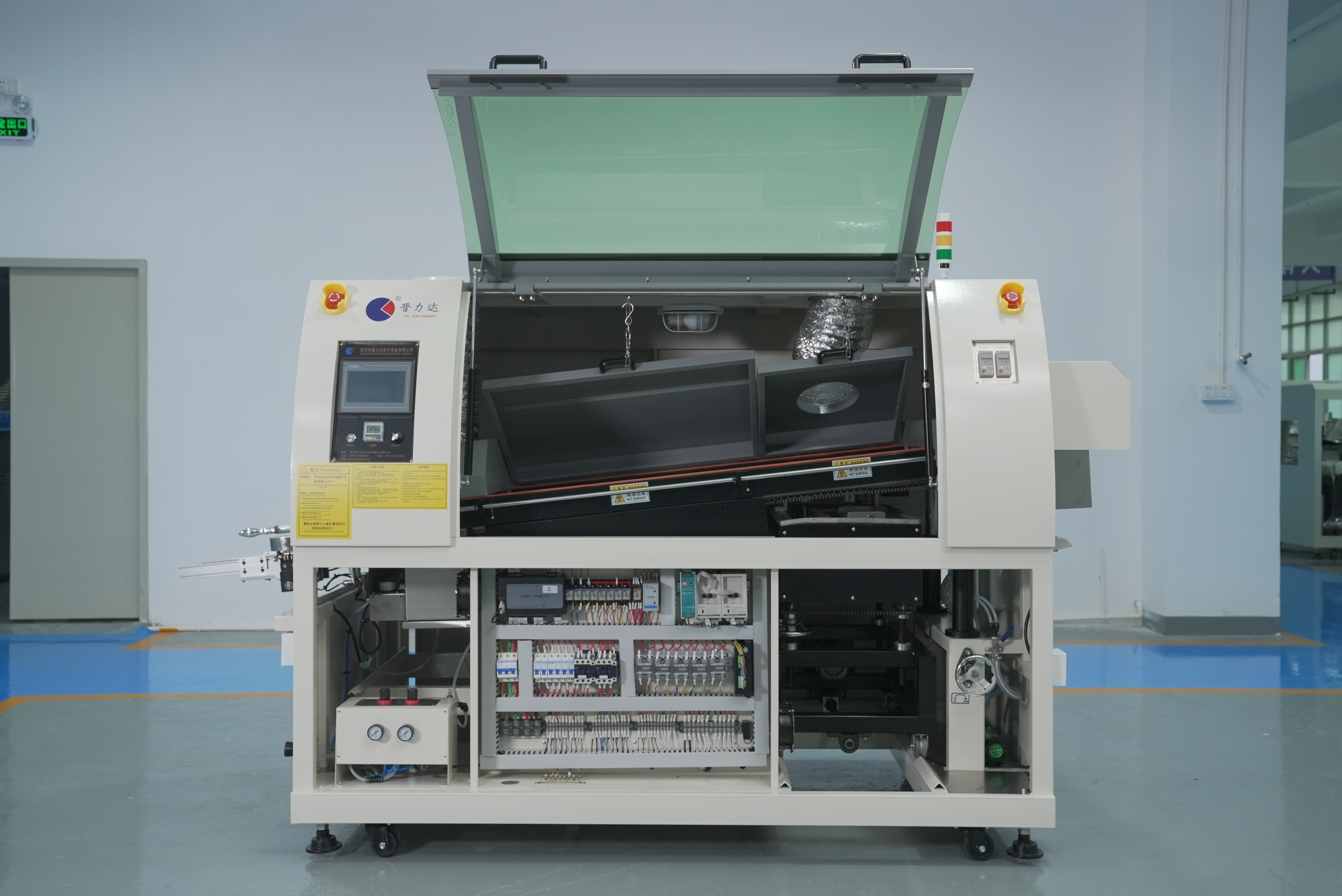 晋力达多温区回流焊的核心技术突破体现在三大维度:温控系统采用自主研发的PID智能模块,结合瑞士CARLO GAVAZZI固态继电器,实现每0.2秒温度监测与脉冲控制,确保炉内温度分布误差≤±2℃;氮气保护系统通过专利蜗壳式双通道热风结构,将炉内氧气浓度控制在50ppm以下,焊点氧化率降低90%,特别适配01005等超微型元件焊接;智能化系统集成工艺数字孪生模块,可采集132项实时参数,通过百万级历史数据训练算法,自动优化炉温曲线,调试周期压缩至3天,年节约返工成本超200万元。
