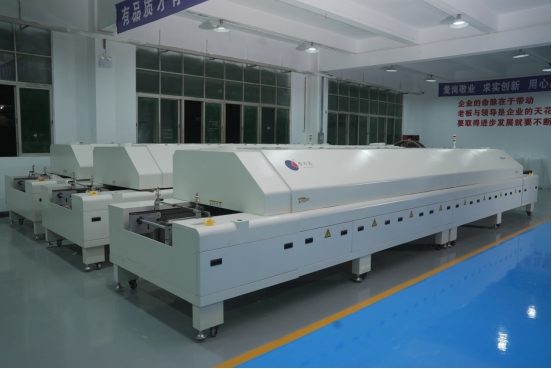 2.性能指标:双导轨回流焊支持0201元件焊接,焊锡膏印刷偏差≤3μm,设备连续运行无故障时间≥1000小时;